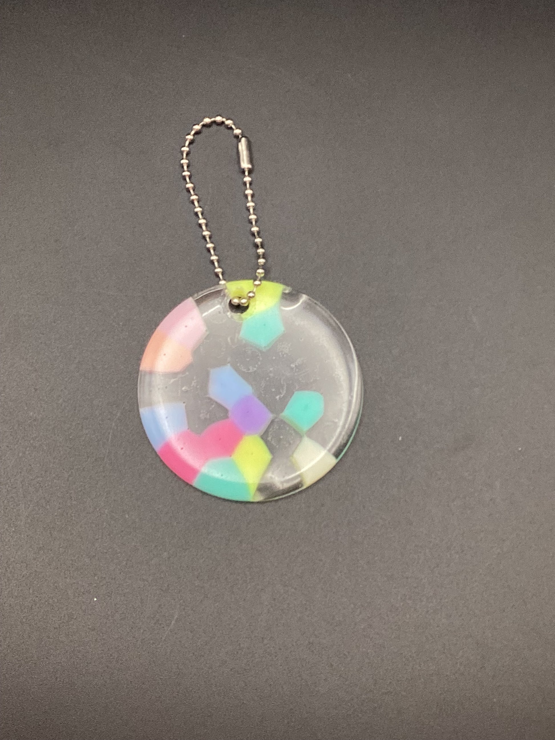 Add a splash of color and handmade charm to your keys, backpack, or bag with this circular keychain made from melted beads! Each keychain is carefully crafted, fusing vibrant beads into a fun, one-of-a-kind design that catches the eye.
